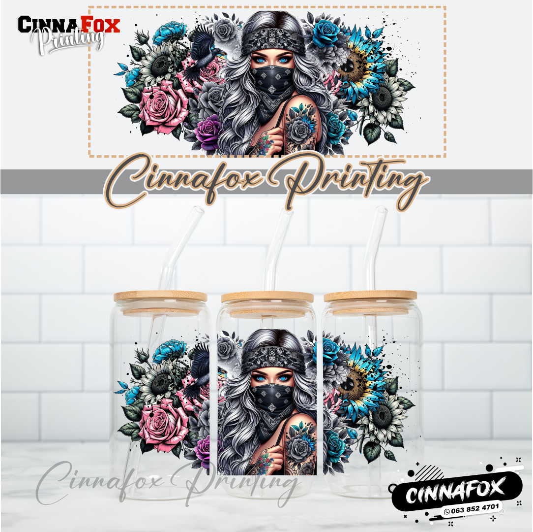 Badass Lady 17 Glass Cup With Lid & Straw