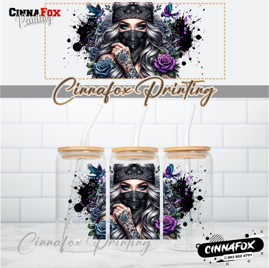 Badass Lady 20 Glass Cup With Lid & Straw