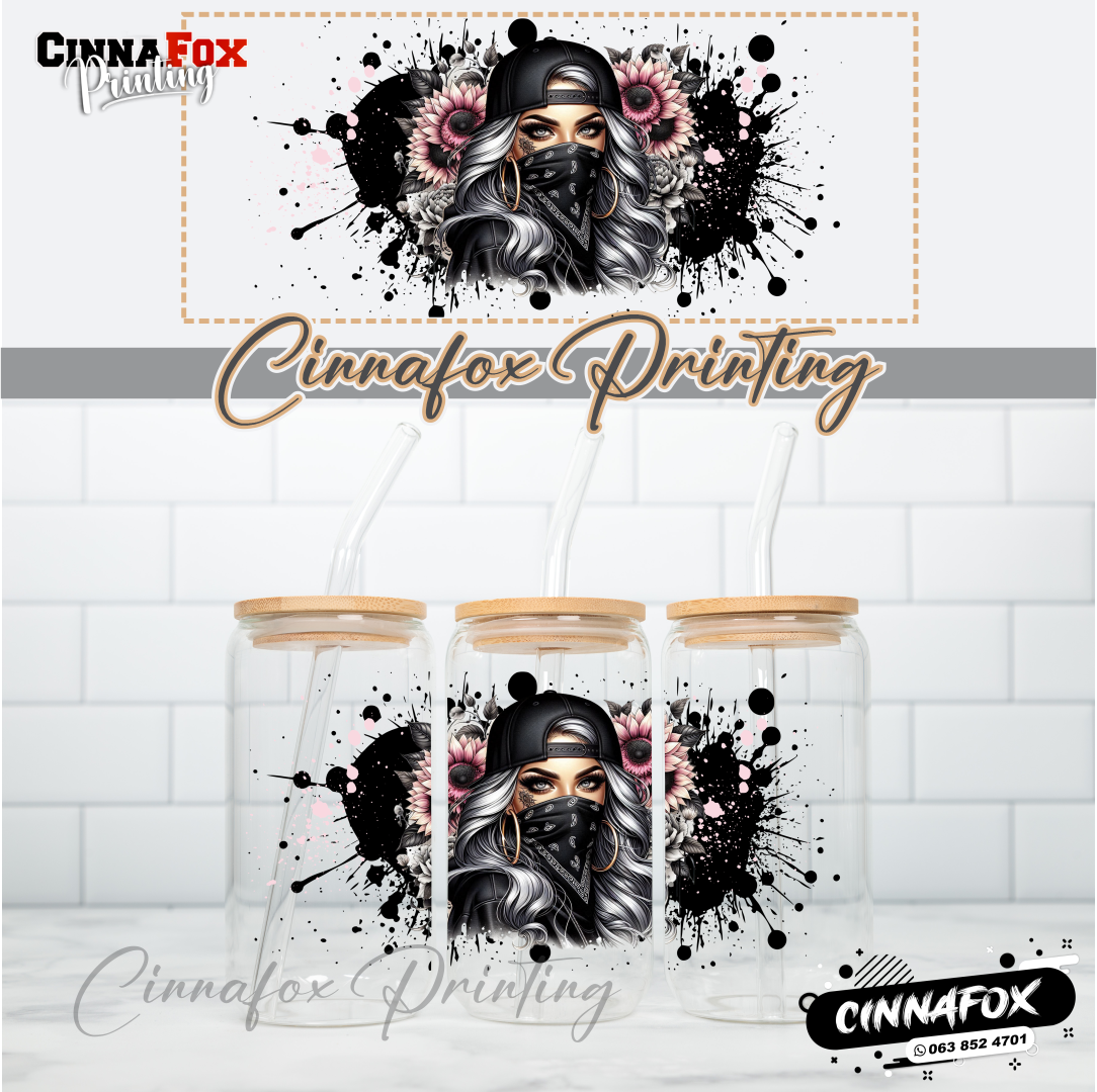 Badass Lady 22 Glass Cup With Lid & Straw