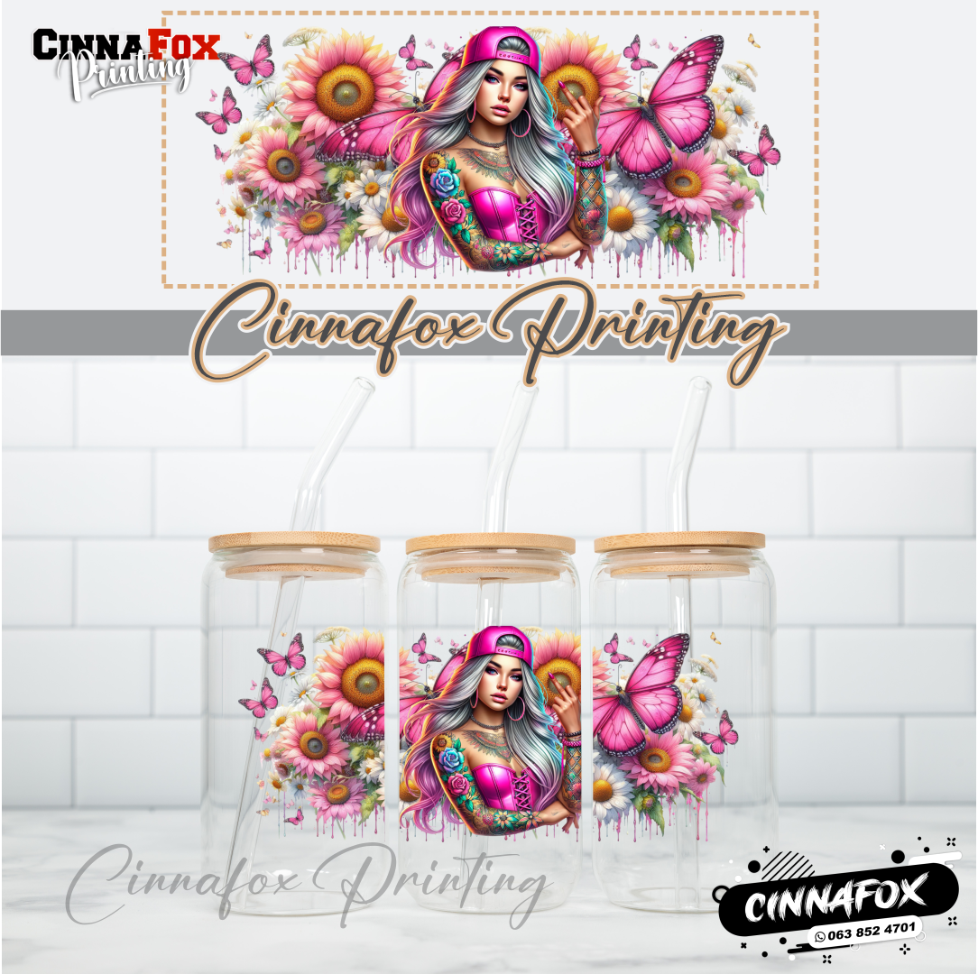 Badass Lady 28 Glass Cup With Lid & Straw