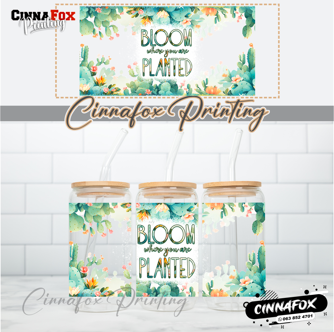 Bloom Where You Are Planted Glass Cup With Lid & Straw