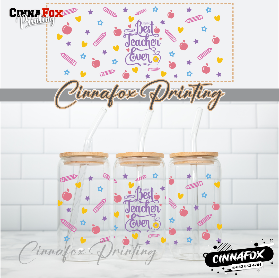 Best Teacher Ever Glass Cup With Lid & Straw