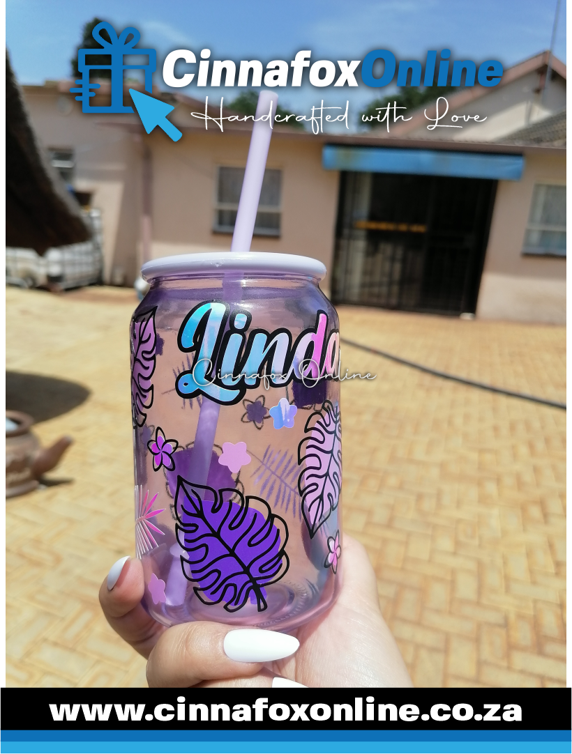 Custom Name Glass Can Cup with Plastic Lid and Straw