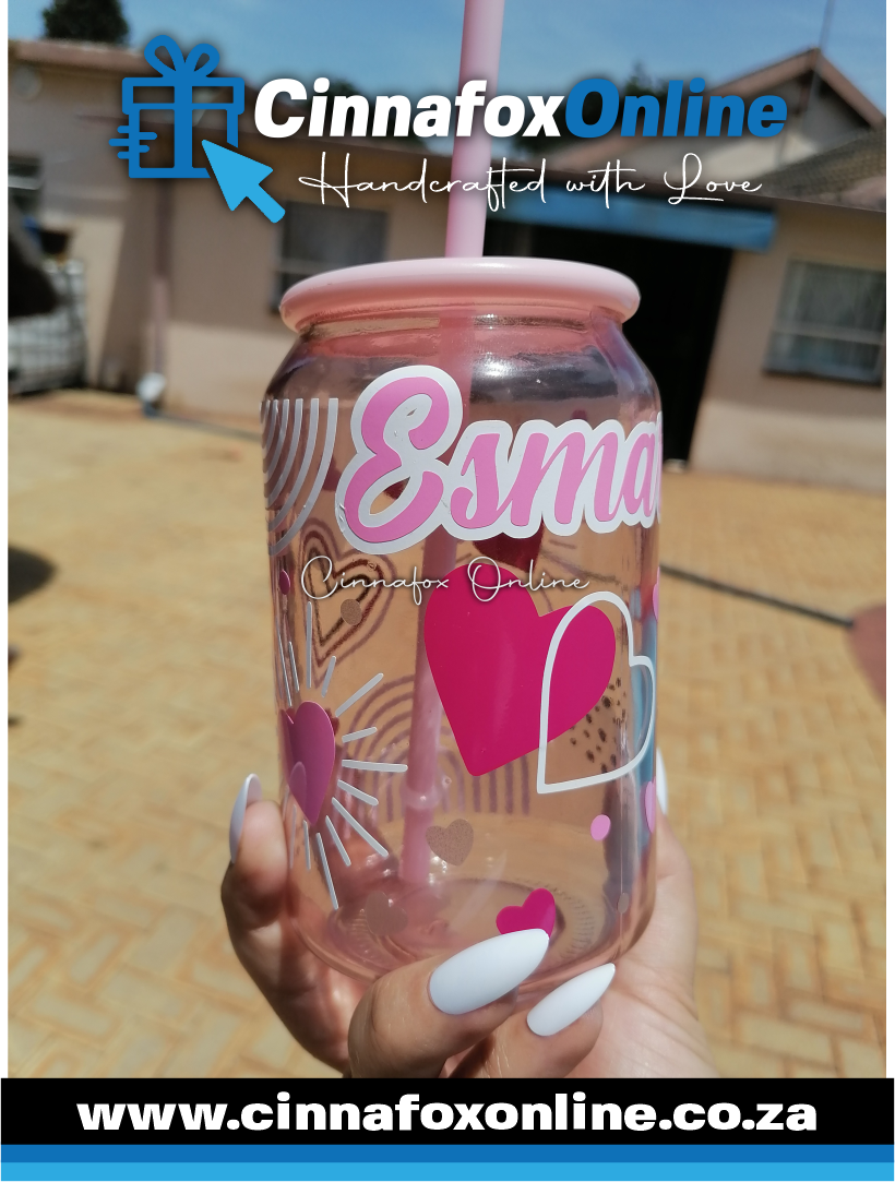 Custom Name Glass Can Cup with Plastic Lid and Straw