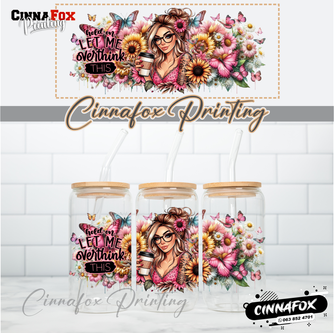 Hold On Let Me Overthink This Glass Cup With Lid & Straw