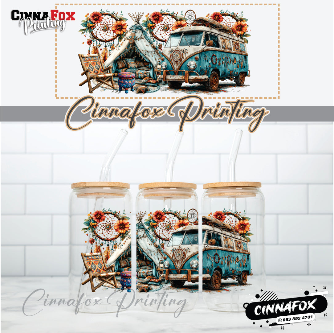 Boho Hippie Glass Cup With Lid & Straw