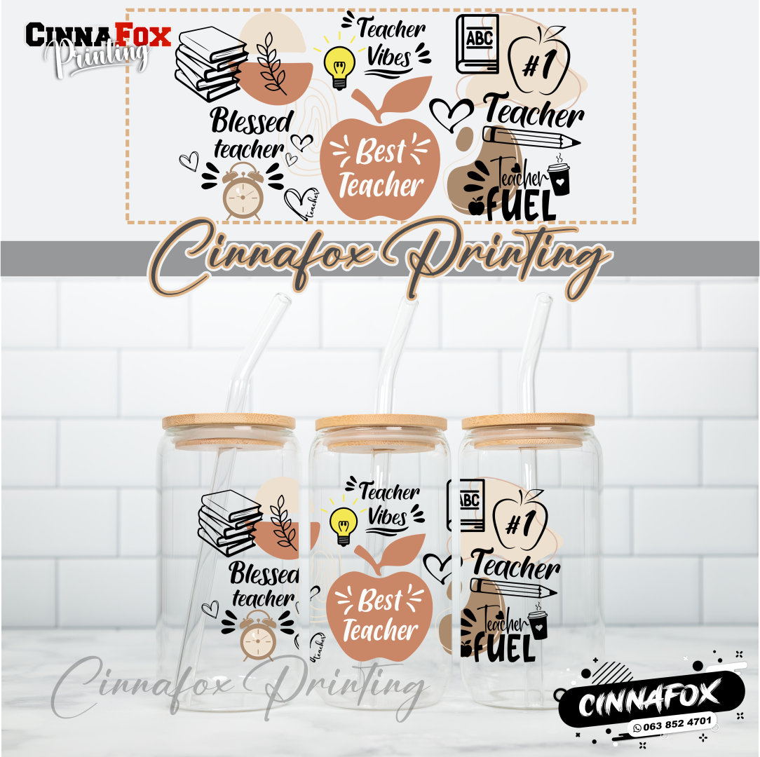 Best Teacher Glass Cup With Lid & Straw