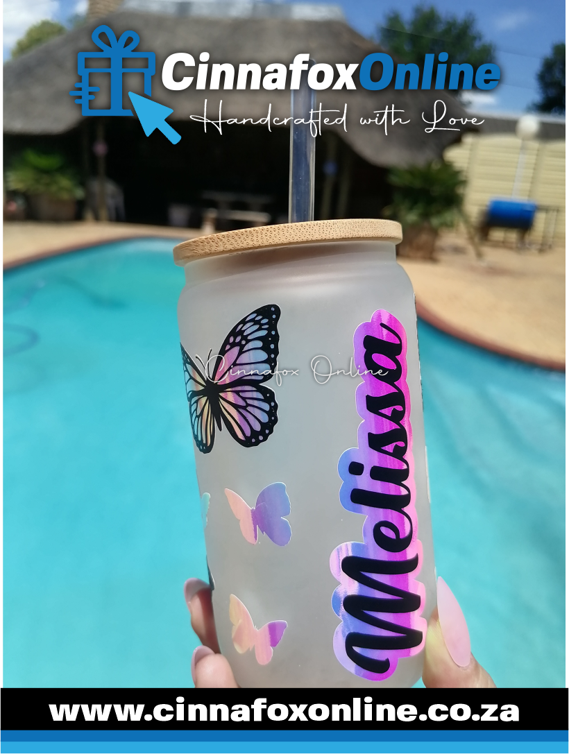 Custom Name - Frosted Glass Cup With Lid & Straw