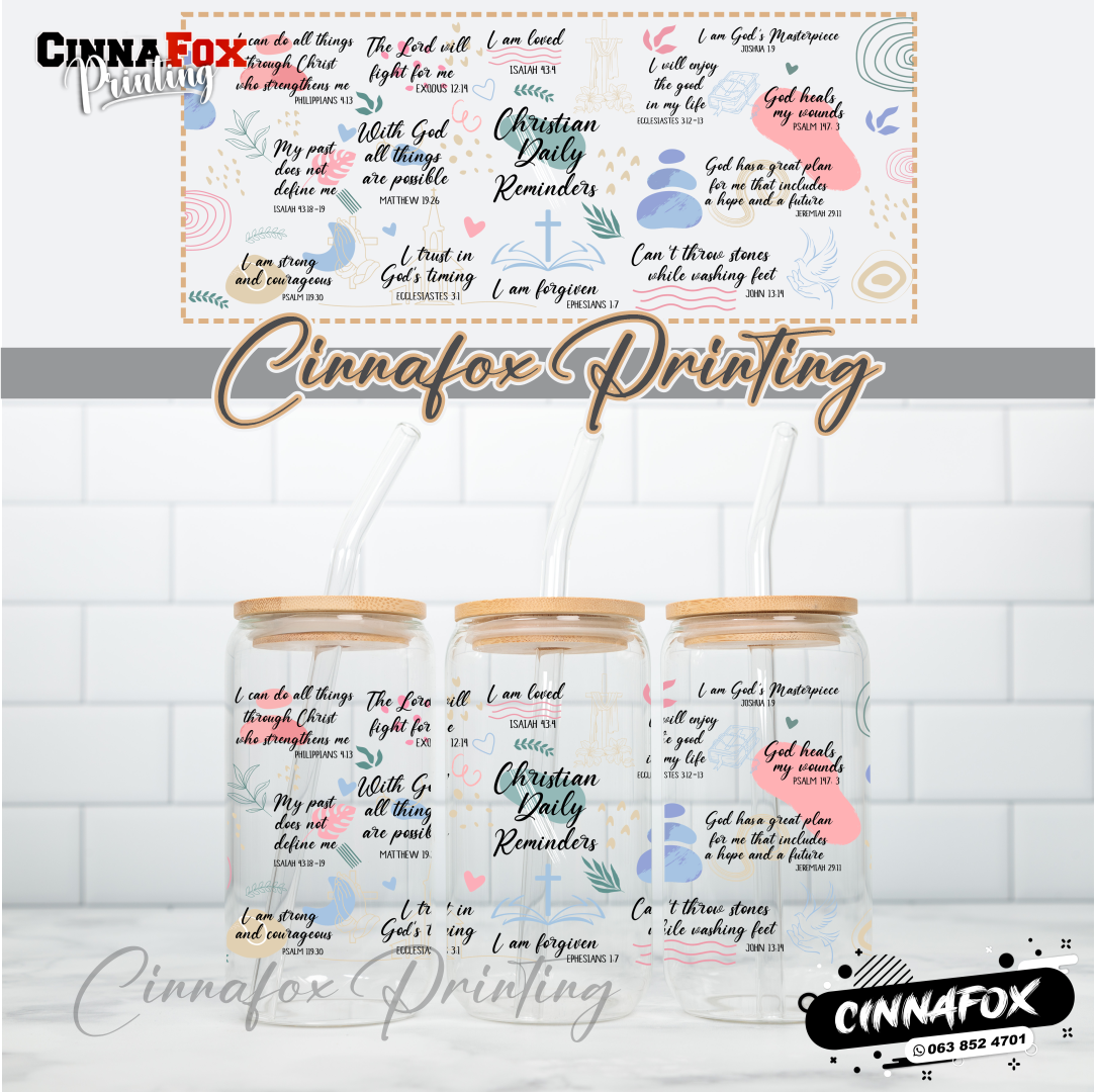 Christian Daily Reminders Glass Cup With Lid & Straw