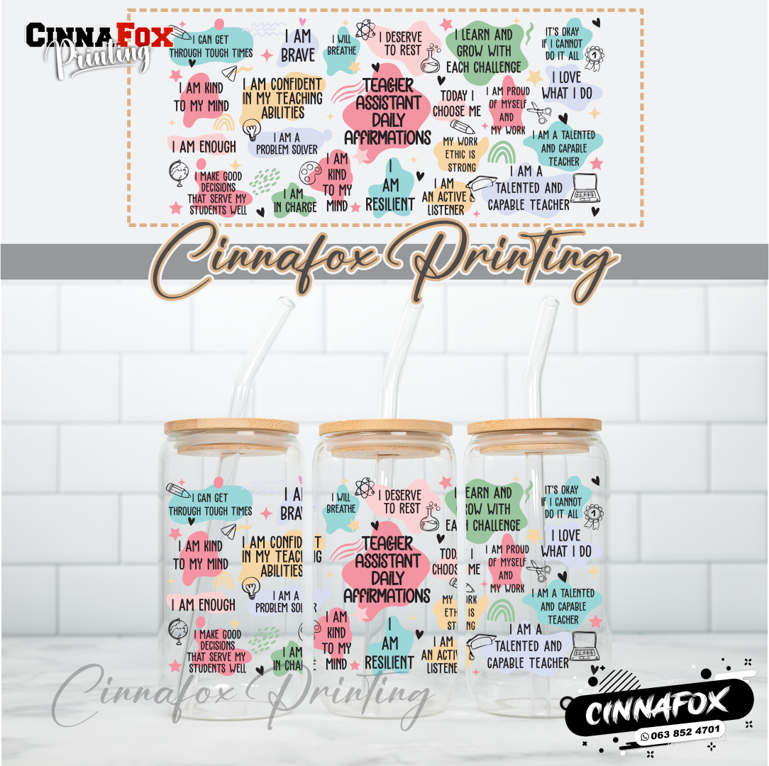 Teacher Assistant Daily Affirmations Glass Cup With Lid & Straw