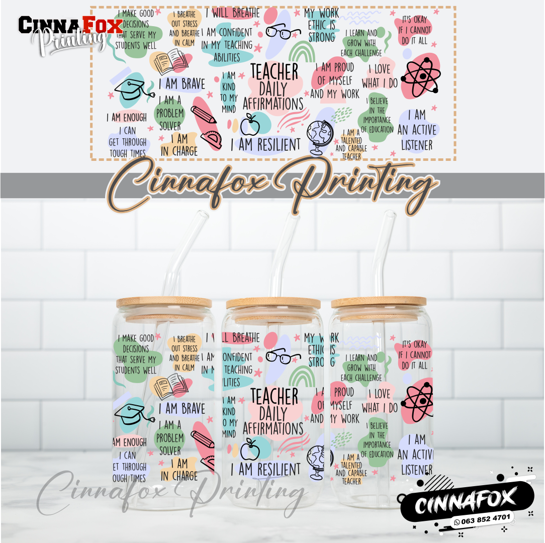 Teacher Daily Affirmations Glass Cup With Lid & Straw